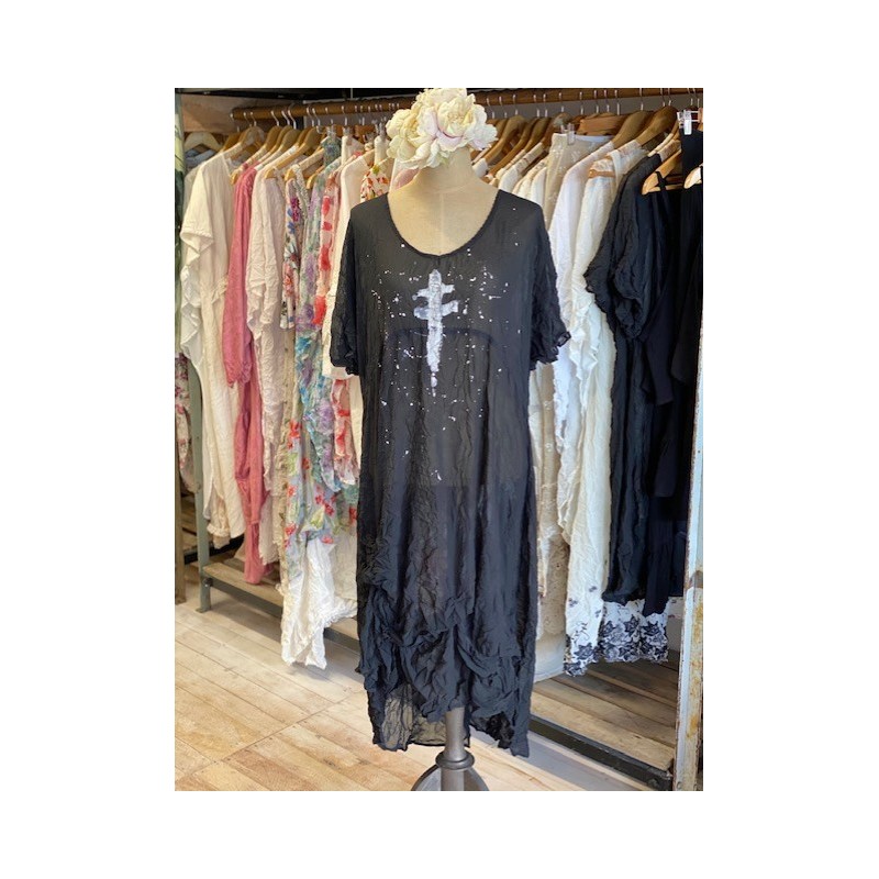 #1087Black Chiffon/polyester Over dress Length: 118cmBust (all the way around): 124cmEstimated size: 12-14